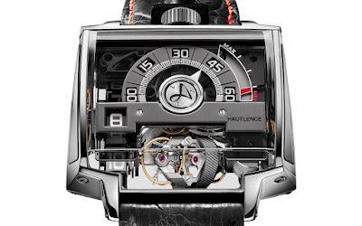Der Hautlence Vortex reimagiert die markante Komplikation der Marke, die rotierende Hemmung mit Sprungstunden. Zuerst eingeführt in der HL2.0, ist die Bewegung die komplizierteste Bewegung, die Hautlence entwickelt hat, bestehend aus etwa 552 Teilen, die die Anzahl der Komponenten in einer Minute Repeater überschreiten. Statt senkrecht am Handgelenk zu sitzen, ist der Vortex waagerecht angelegt und macht ihn sofort tragbar.